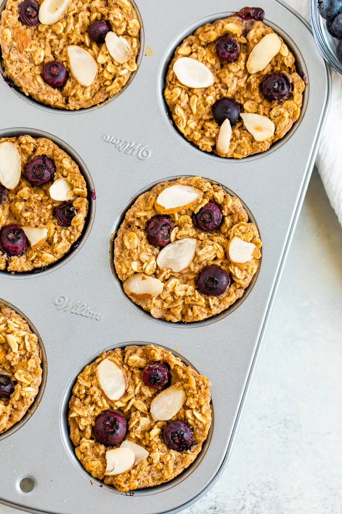 These blueberry baked oatmeal cups work great with fresh or frozen blueberries and they’re perfect for meal prep.