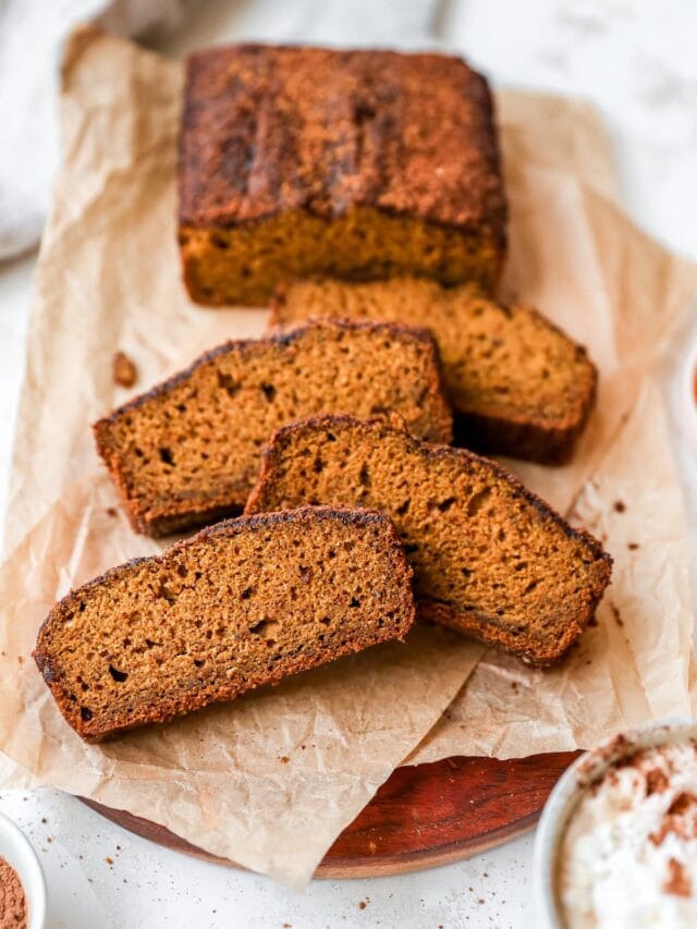 Pumpkin is a great way to lighten up baked goods because you can use it as a replacement for oil, butter and even eggs in some cases. It helps make baked goods moist and gives them a lovely, cakey texture. In terms of nutrition, it’s super healthy – low in calories, carbs and packed with nutrients including Vitamin A and fiber.