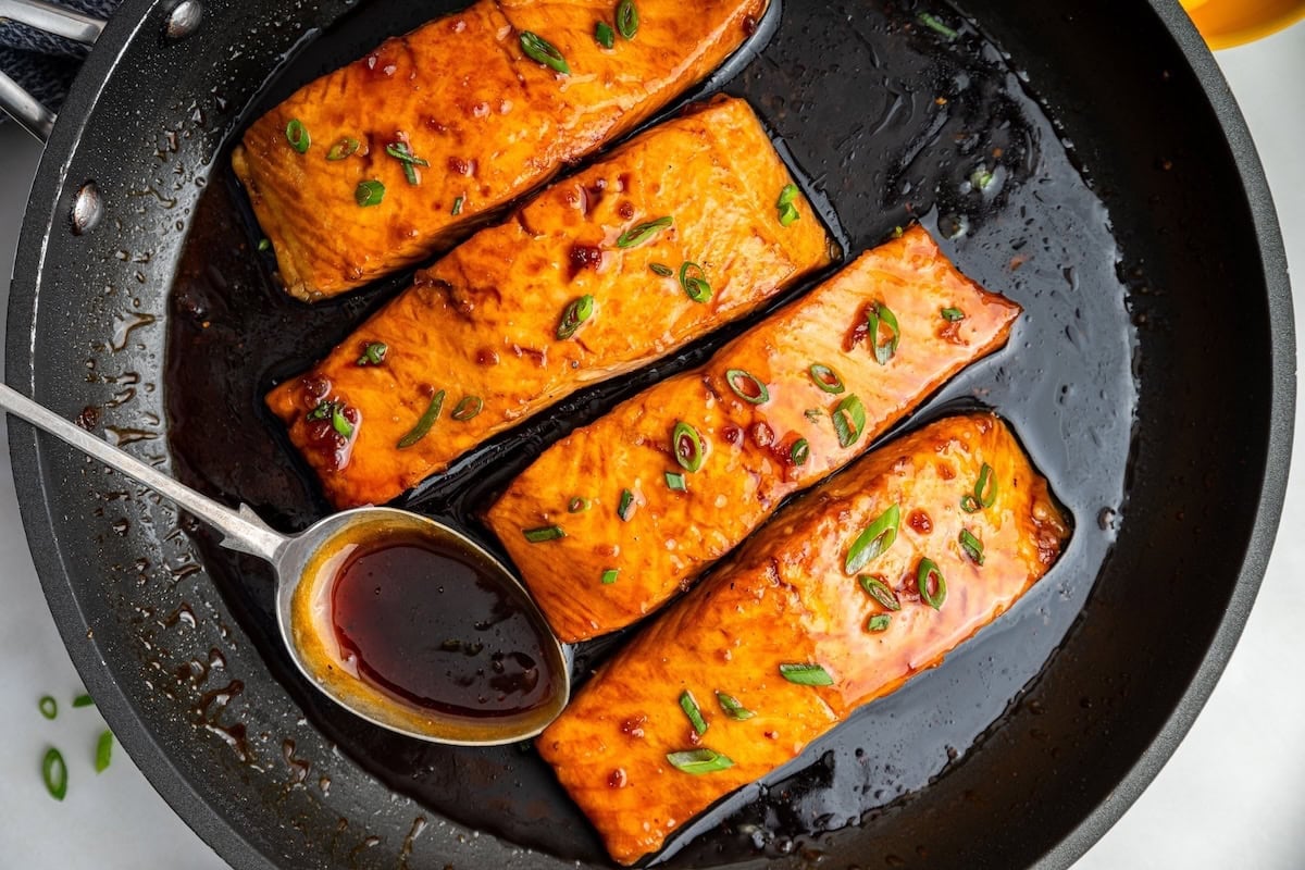 Step 4: Remove the salmon from the skillet and drizzle with the remaining glaze. Serve immediately with your favorite sides!