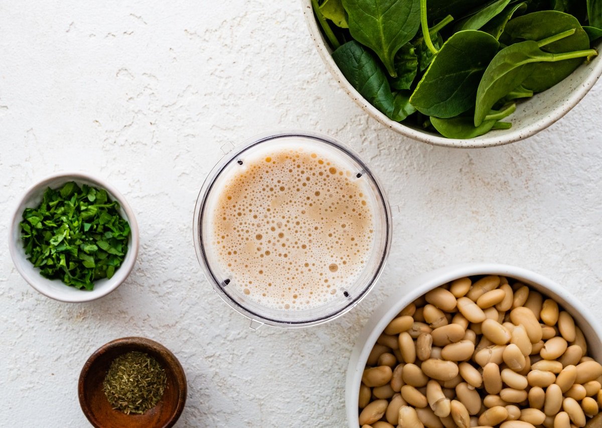 - Blend 1 can of the drained beans with 1 cup broth. Set aside.